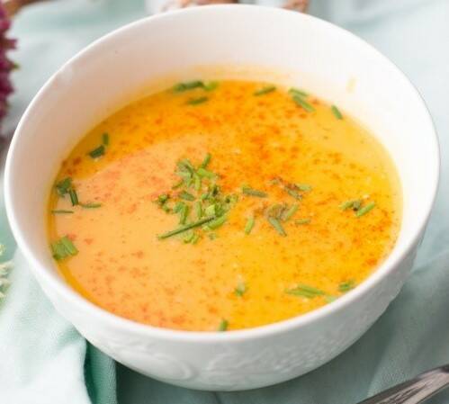 Pompoensoep met zoete aardappel en kurkuma